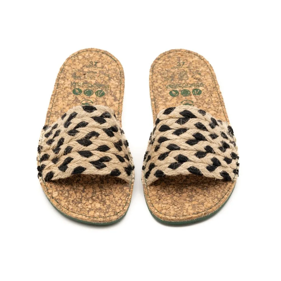 The Lisa sandals are dedicated to Lisa Simpson, an iconic character from The Simpsons, known for being a vegetarian, environmentalist, activist, and Buddhist. Featuring a barefoot-style insole made of rubber with cork, stitched to an EVA sole, they are ideal for warm days at the beach and urban strolls. The circular design is made to order in Elche (Spain) using locally sourced recycled materials, minimizing environmental impact as much as possible.