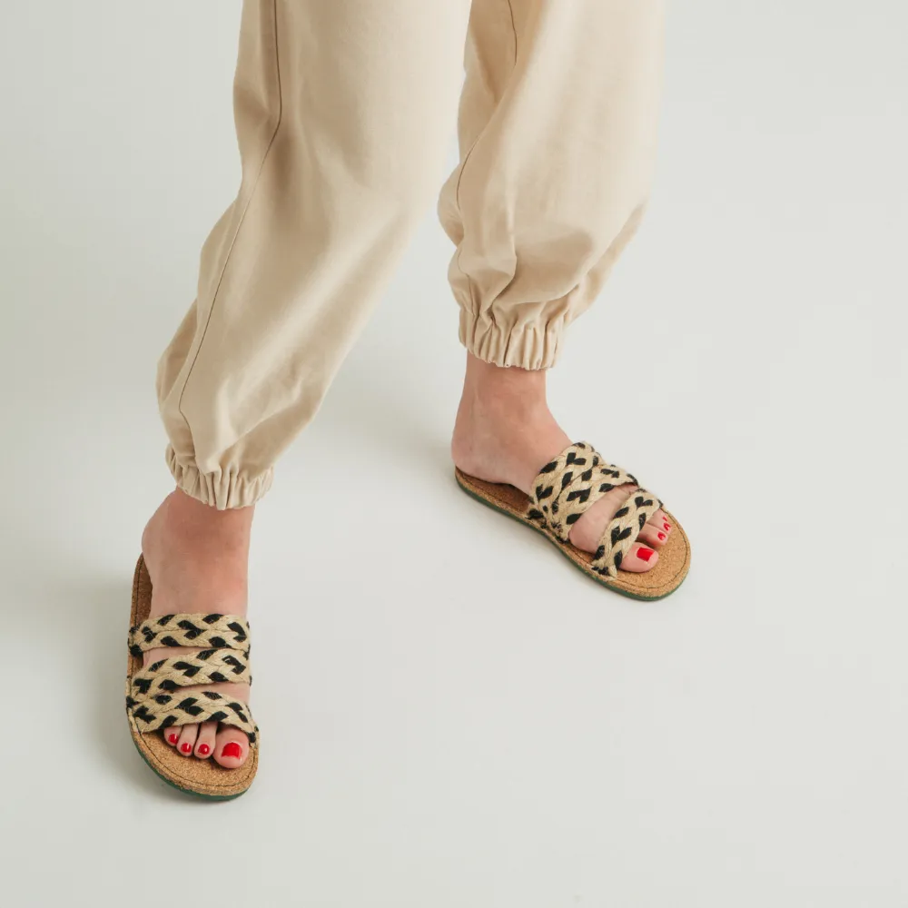 With a barefoot-style insole made of rubber with cork stitched to an EVA sole and crafted from locally sourced eco-conscious materials, the Angela sandals are a comfortable and lightweight alternative for any occasion. This circular design pays homage to Angela Davis, an African American philosopher and activist from the University of California and a notable vegetarian. Made to order in Elche (Spain), with minimal environmental impact.