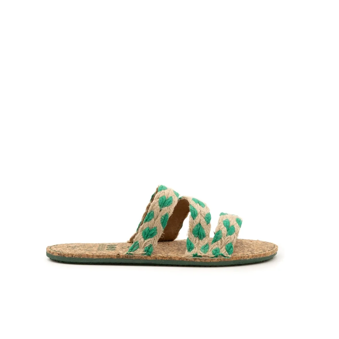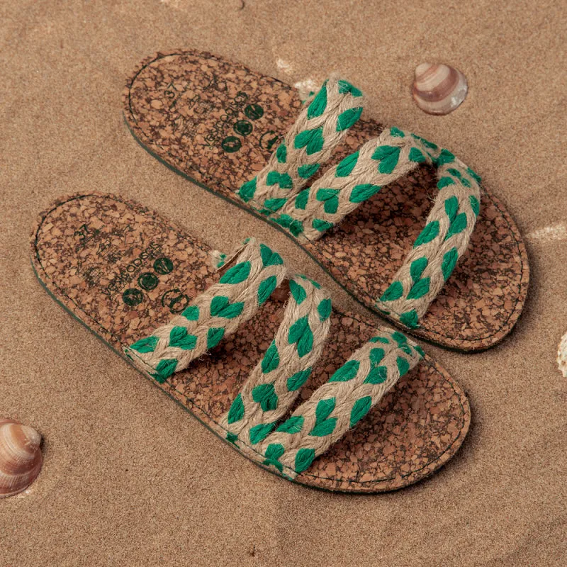 Handmade to order in Elche (Spain), the Marguerite circular sandals offer a lightweight and conscious alternative for both beach days and city strolls. They feature a barefoot-style insole made of rubber and cork, stitched to an EVA sole, using locally sourced recycled materials to minimize environmental impact. In homage to Marguerite Yourcenar, a renowned novelist, essayist, poet, playwright, translator, and notable vegetarian, known for her novel "Memoirs of Hadrian."