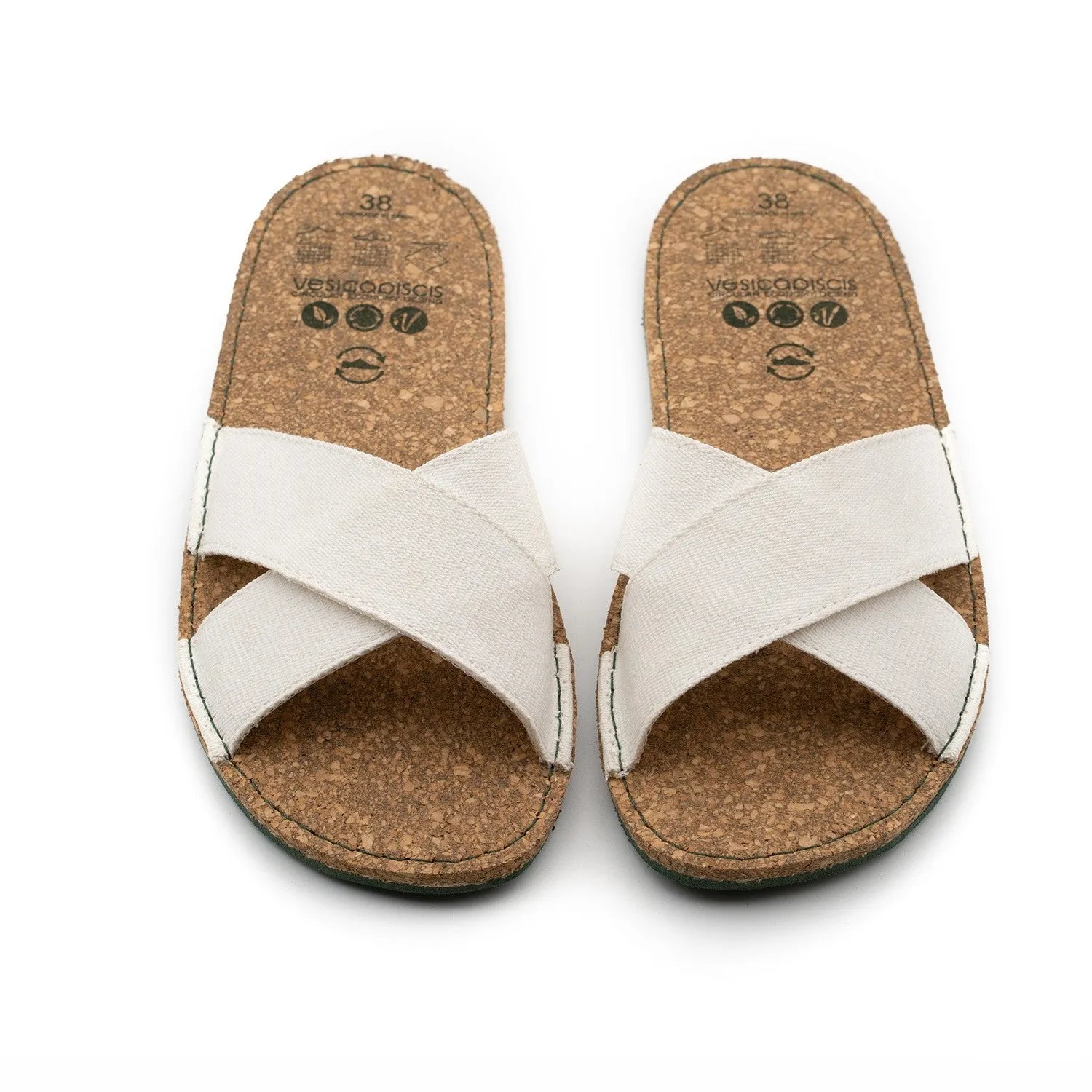 Our Alanis model is a tribute to Alanis Morissette, a vegan singer, guitarist, songwriter, producer, and actress with a remarkable musical career since the 1990s. Made from locally recycled materials, they feature a barefoot-style sole made of rubber and cork, stitched to an EVA sole. They are an excellent option for summer, with each pair is handmade to order in our workshop in Elche (Spain), minimizing environmental impact.