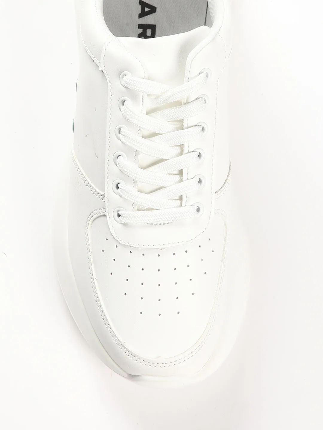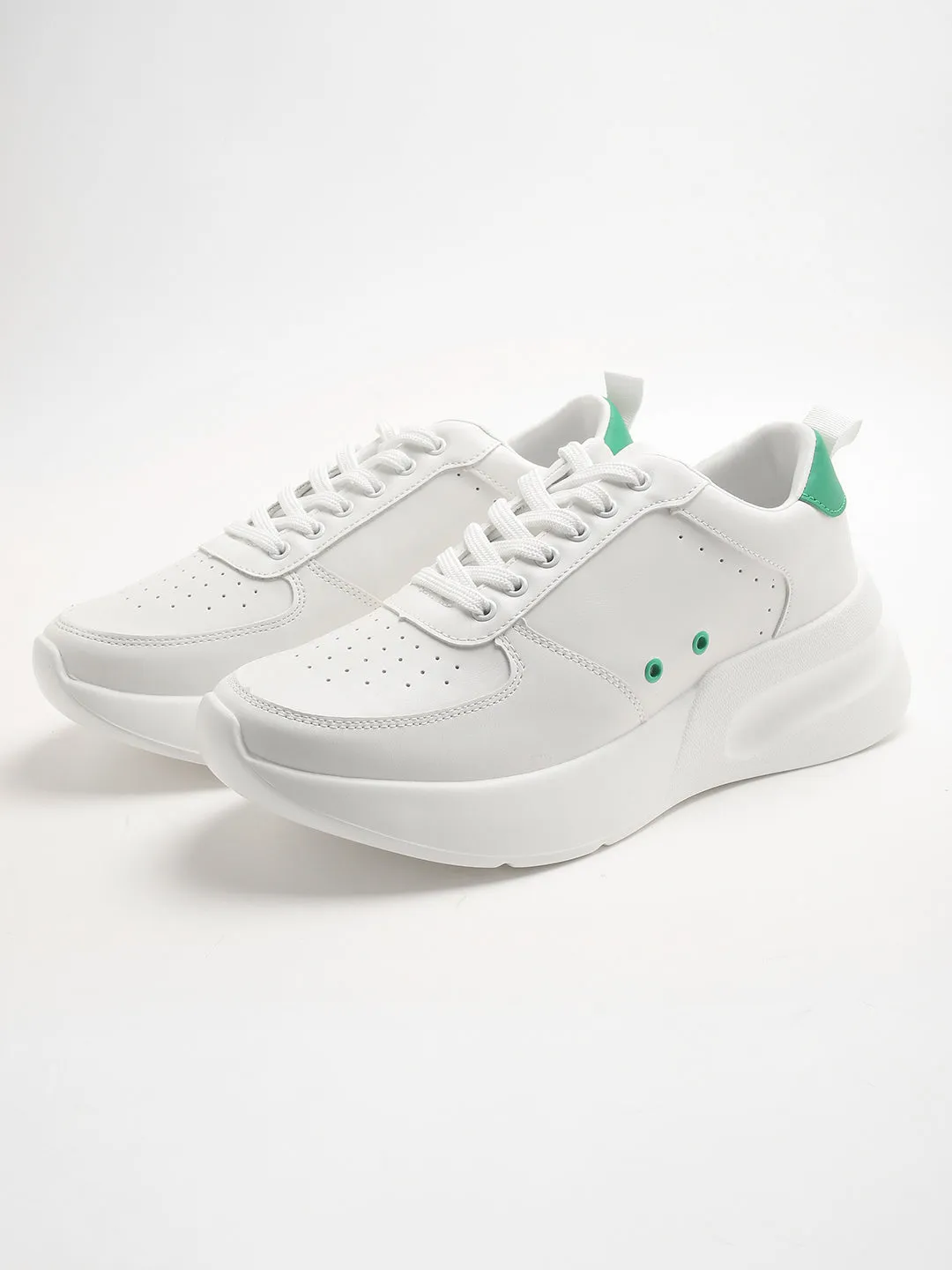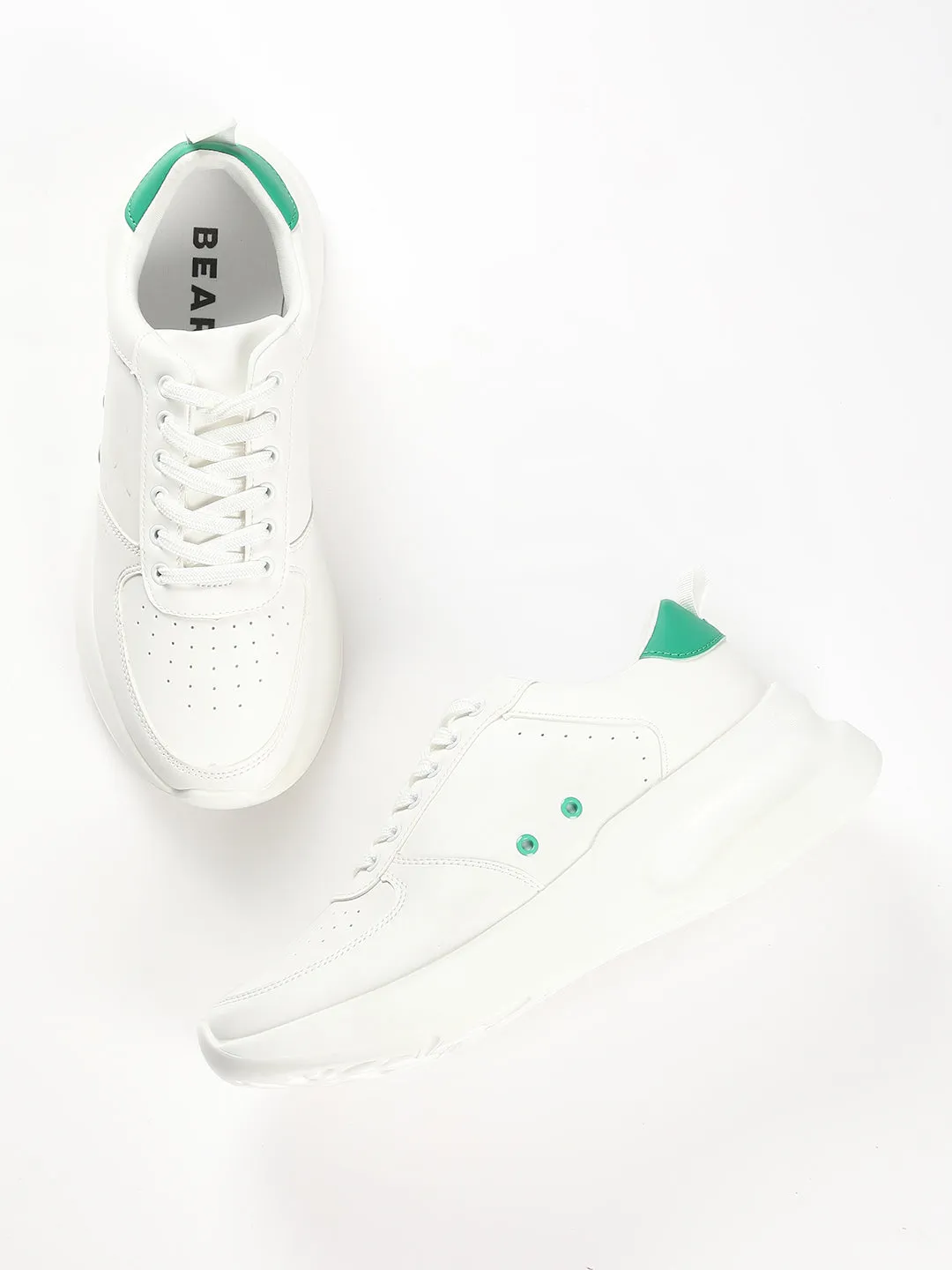This classic white sneakers with a perforated toe and other design elements such as green detailing on the sides and contrast back panel with a durable finish offers a good grip thanks to its comfortable sole.