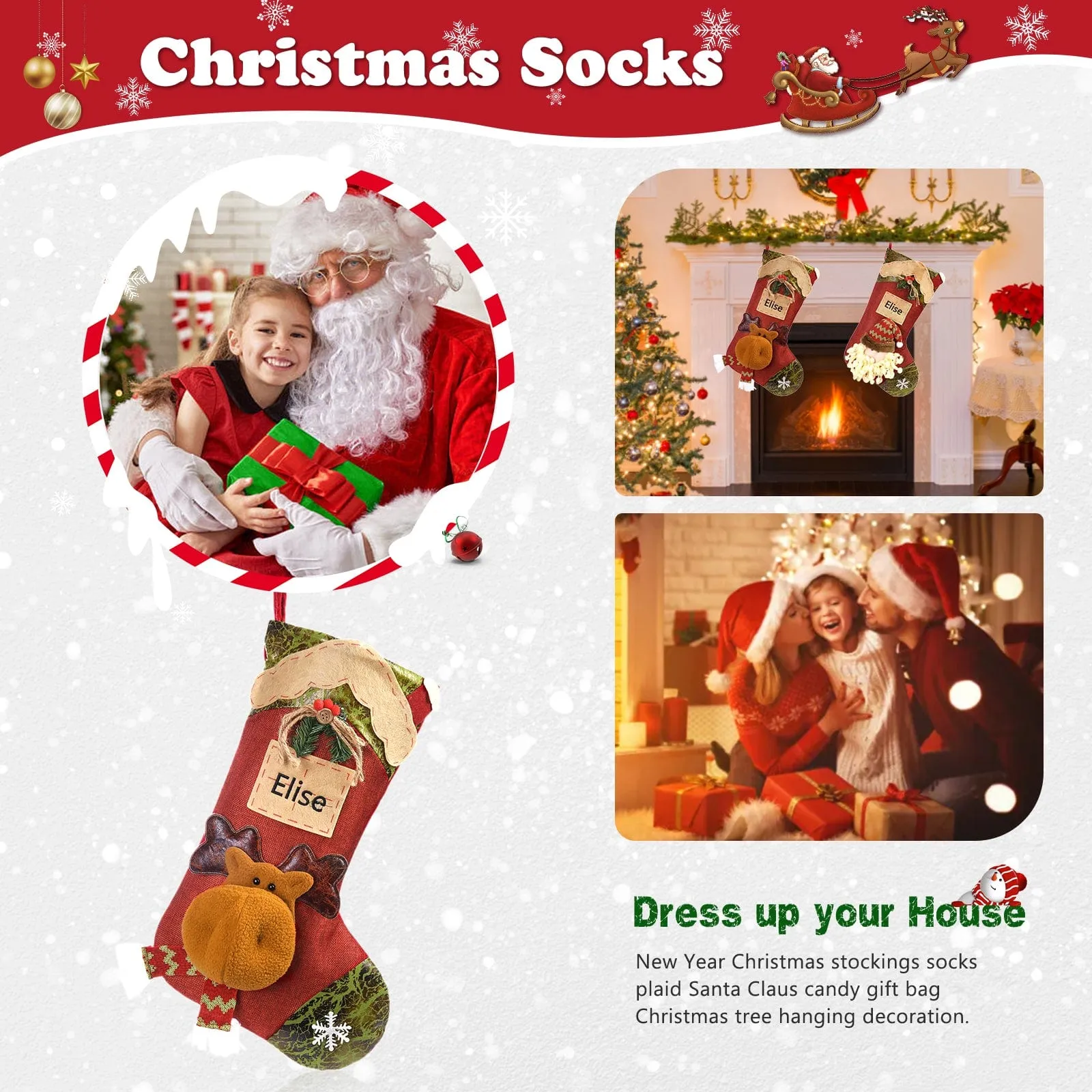 Experience the epitome of holiday elegance with our exquisite Custom Name Elk Snowman Christmas Socks! Meticulously crafted from high-quality fabrics, these socks imbue warmth and sophistication. With a touch of personalization, these socks not only keep you cozy but also make for a memorable gift that embraces the festive spirit.