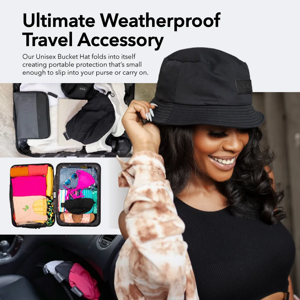 Elevate your everyday look with the Hairbrella Unisex Bucket Hat—the ultimate blend of fashion and function. Whether it's a rainy day or sunny skies, this hat has you covered. Made from 100% waterproof microfiber and featuring a plush satin-lined interior, it's designed to keep your hair dry, frizz-free, and fabulous, no matter the weather. Compact and stylish, it’s the must-have accessory that fits right into your busy lifestyle.