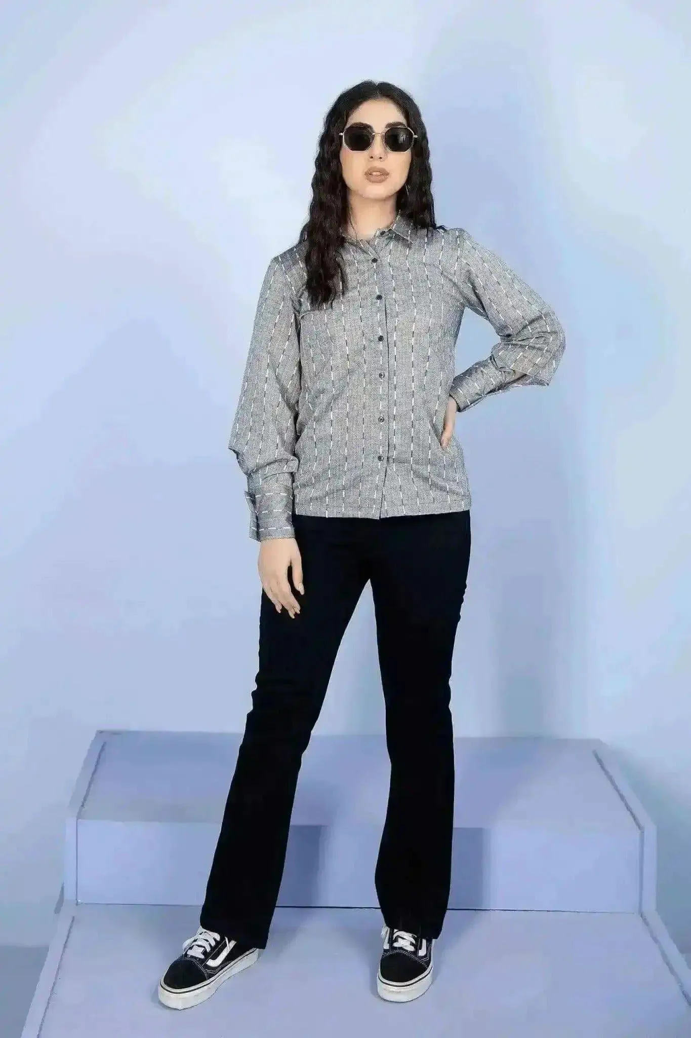 The denim fabric is light weight and breathable for a cool summer look.