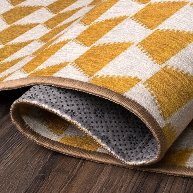 Pull together a lovely living room or bedroom with our modern rug. The stylish rug has a heavily distressed look, which is colored with yellow and gold for a bold piece that will surely bring more bright colors to your floors.